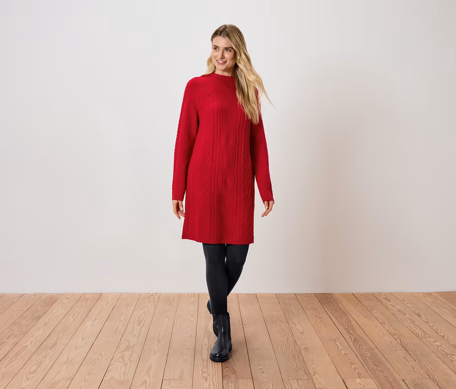 Robe en maille avec motif torsadé, rouge
