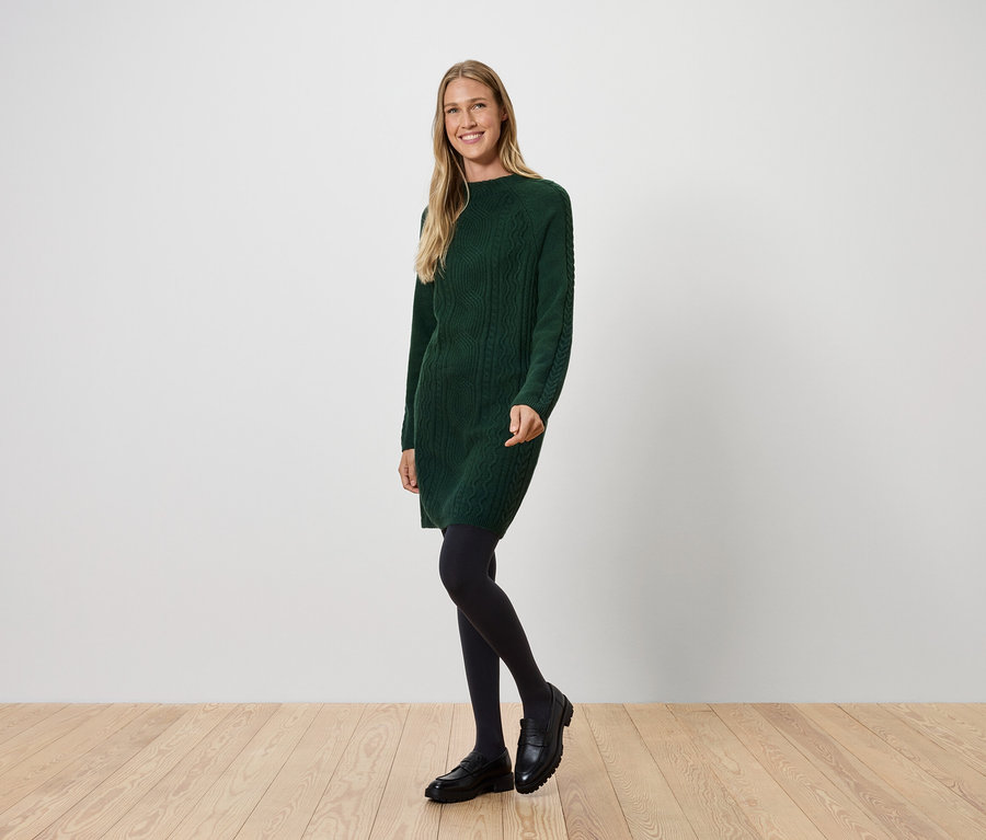 Robe en maille avec motif torsadé, vert foncé
