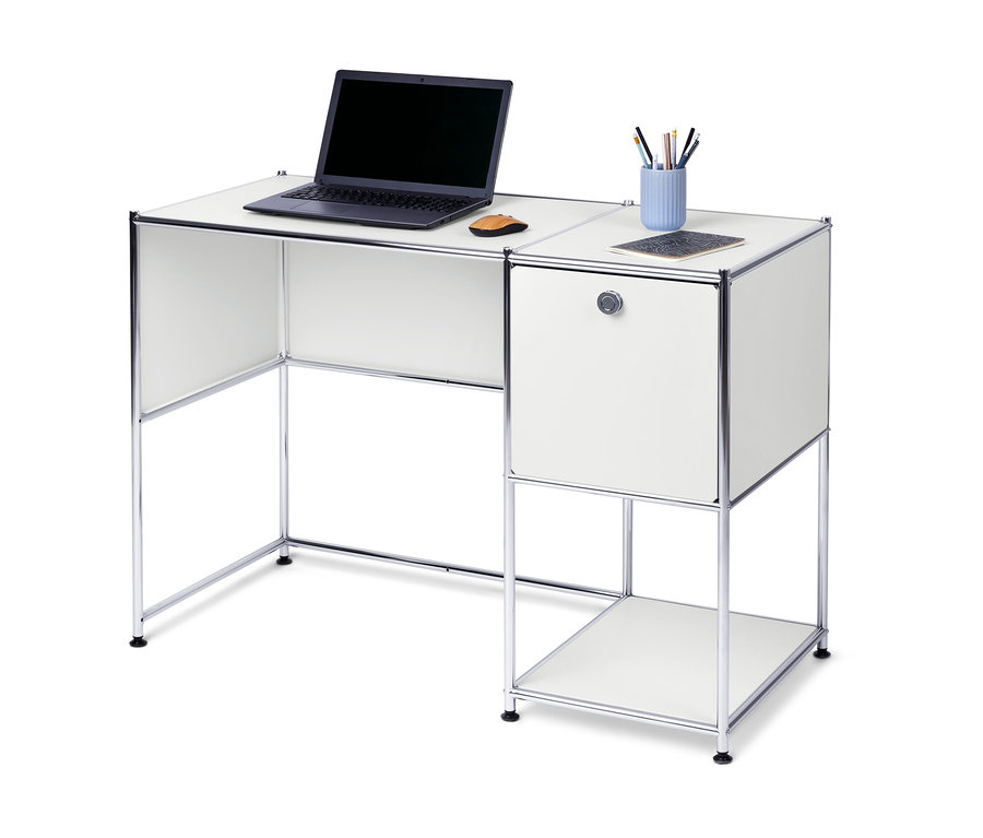 Bureau en métal « CN3 » avec une porte abattante, blanc