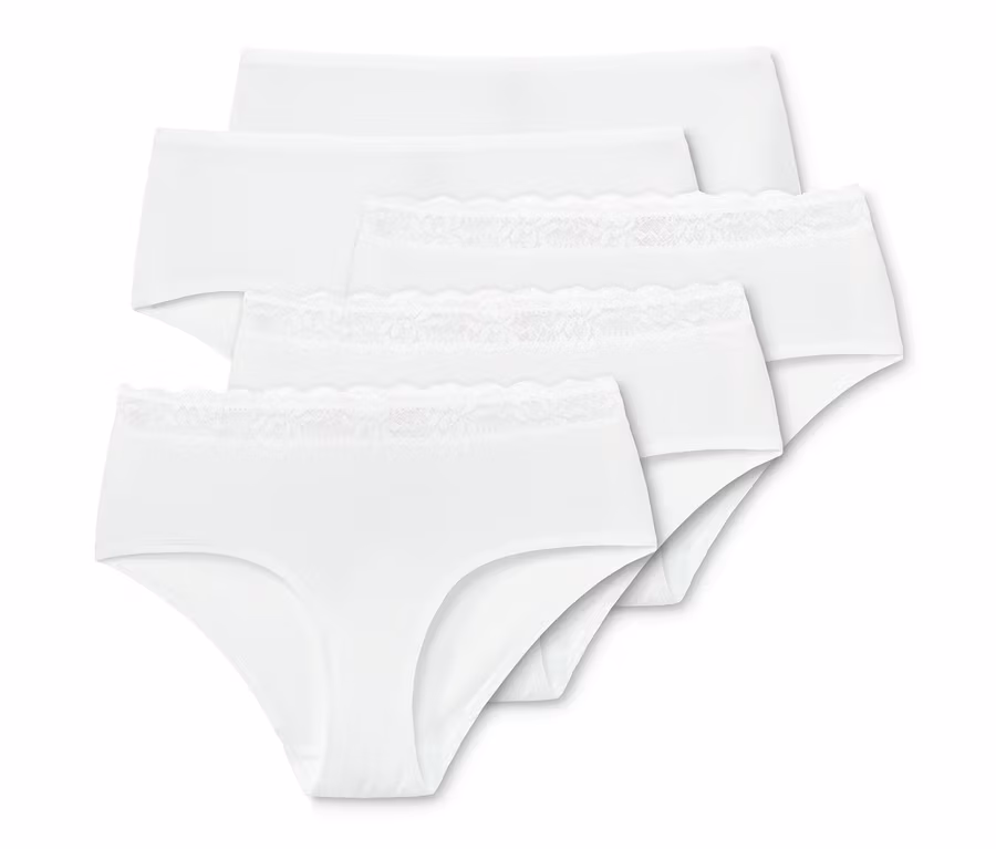 Parfois on aime porter de la dentelle, parfois on préfère porter des sous-vêtements plus simples, mais une chose est toujours essentielle : ils doivent être confortables. Et c'est exactement ce que sont ces cinq culottes pour femme dont trois sont parées de dentelle douce tandis que les deux autres, plus épurées, n'en possèdent pas. Leur matière micro-touch douce avec brillance soyeuse est agréable sur la peau, tandis que l'élasthanne leur permet d'être indéformables et assure un maintien parfait et un grand confort. Les culottes ont un gousset en coton et vous séduiront par leur aspect semblable à de la soie. Leur coupe est classique et leur couleur blanche ou bleu foncé vous permettra de les combiner facilement.