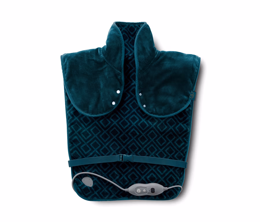Ce coussin chauffant pour le dos représente la solution idéale car la nuque, le dos et les épaules sont soumis à un traitement thermique ciblé. Le grand coussin chauffant est fabriqué en peluche douce et peut être fixé sur le corps avec une ceinture ventrale réglable en longueur ainsi que des boutons-pression – pour un maintien optimal et une répartition régulière de la chaleur.