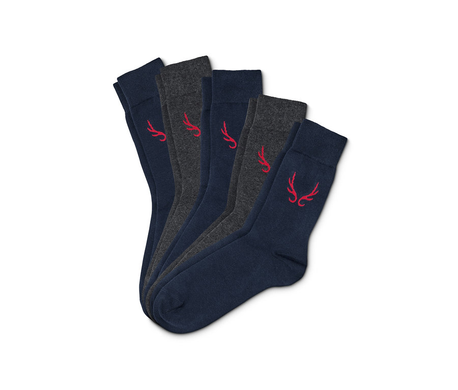 - 3x bleu foncé à empiècement tricoté rouge, 2x anthracite chiné à empiècement tricoté rouge