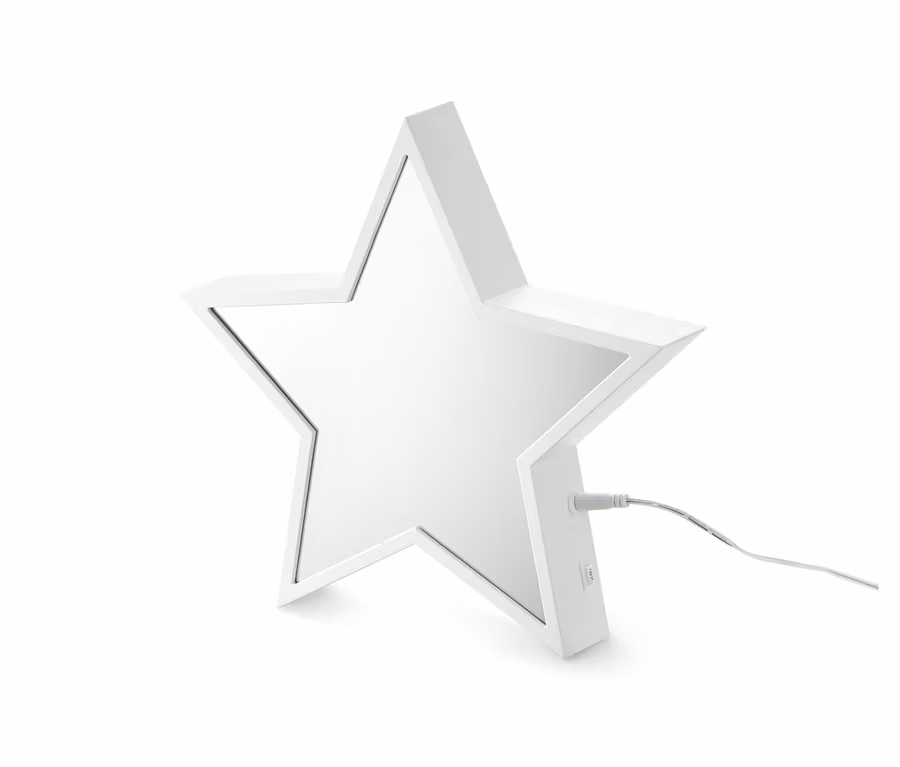 Cette étoile décorative assure un effet de lumière très particulier avec son devant miroité : comme si d’innombrables lumières s’illuminaient en elle. Elle est équipée d’une boucle d’accrochage, mais elle peut aussi être posée debout.