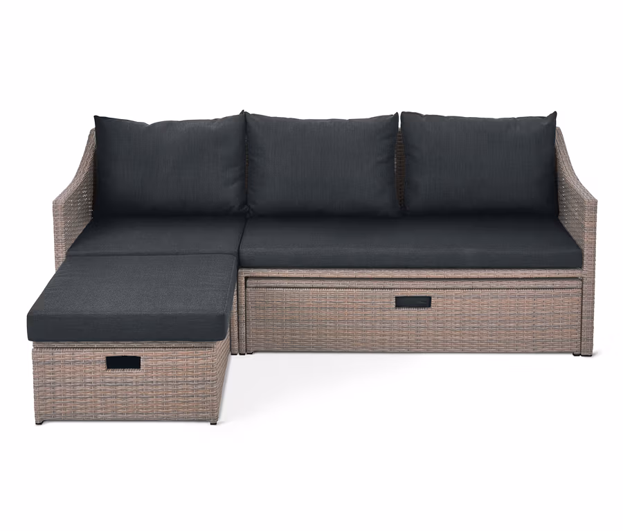 - Utilisation flexible : comme canapé 3 places, canapé d’angle ou canapé extensible, dans le jardin ou sur la terrasse