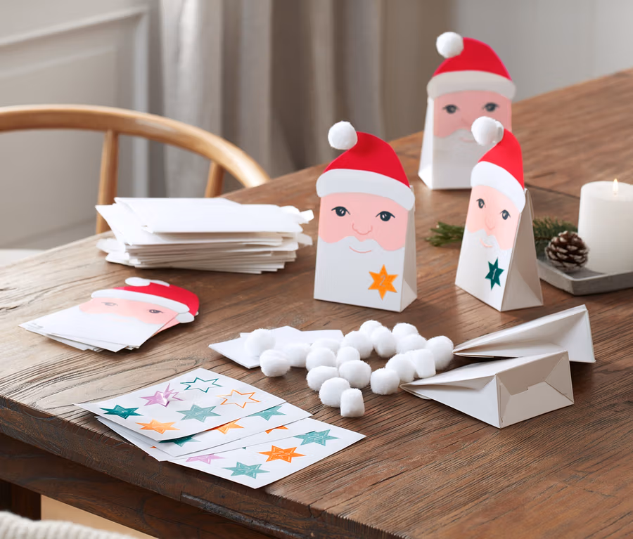 - 24 boîtes en carton, 24 découpes de Père Noël, 4 autocollants, 120 points de colle et notice de bricolage