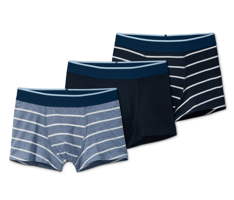 - 1x bleu foncé, 1x bleu clair chiné-blanc à rayures, 1x bleu foncé-blanc à rayures
