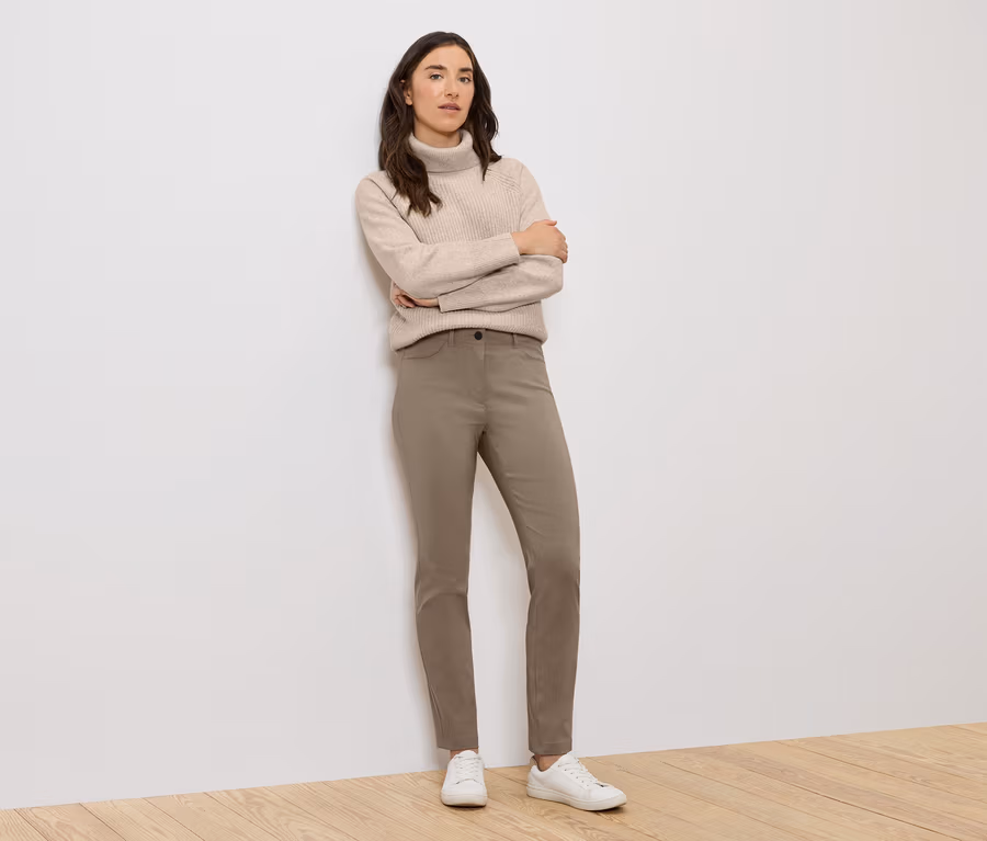 - Taille avec passants de ceinture, bouton et fermeture éclair