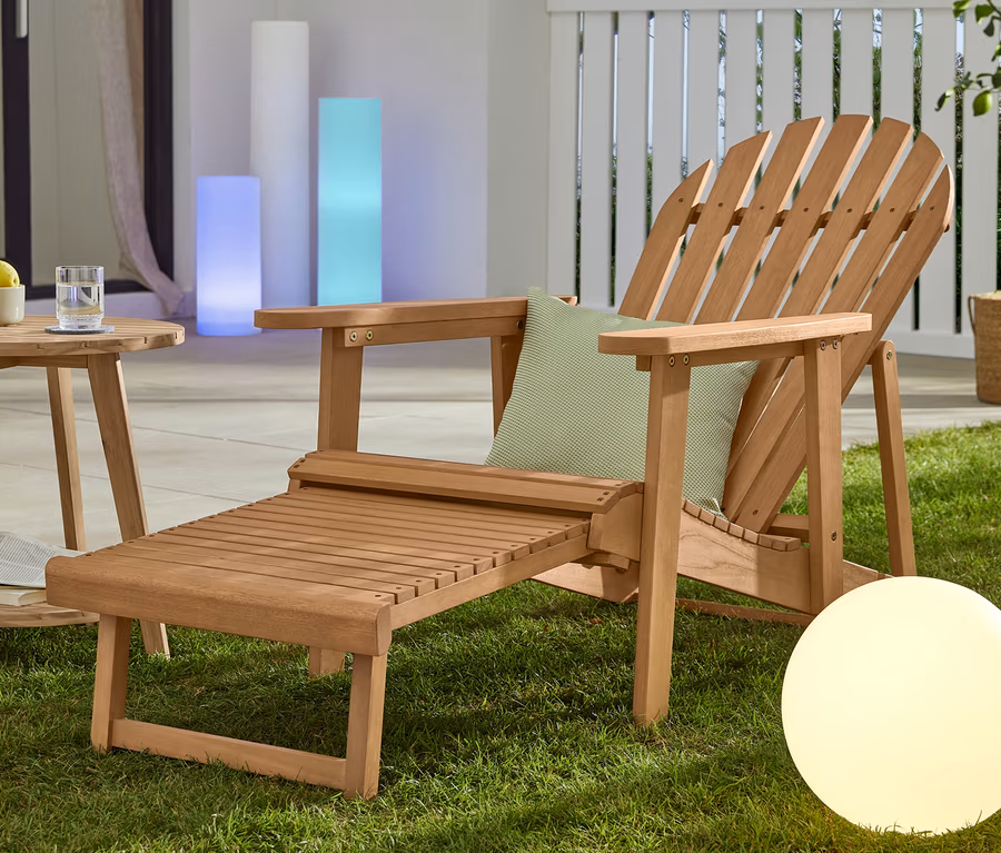 Chaise de jardin Adirondack avec partie pieds extensible, couleur naturelle