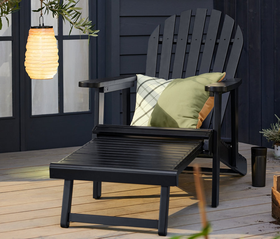 Chaise de jardin Adirondack avec partie pieds extensible, noire