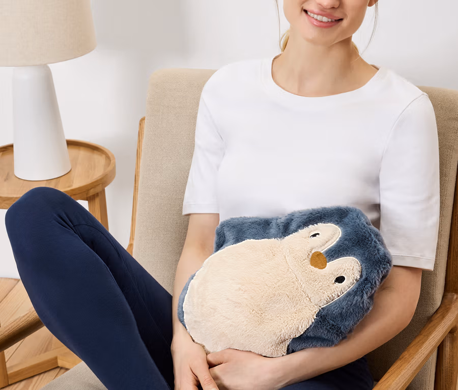 - Bouillotte avec housse moelleuse représentant un pingouin