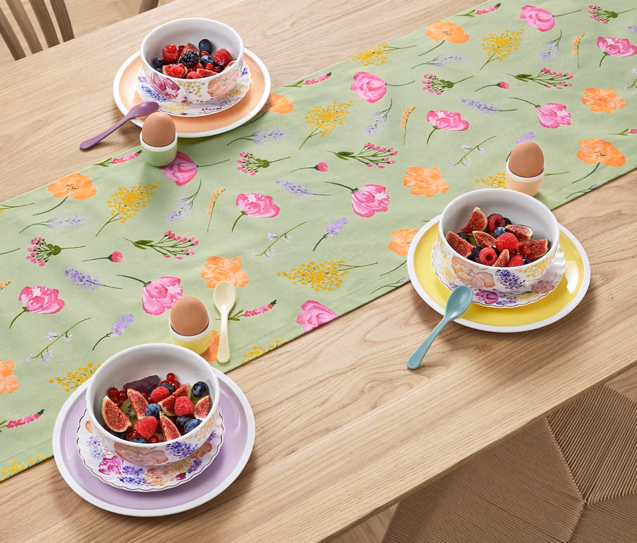 Chemin de table, sauge avec imprimé floral