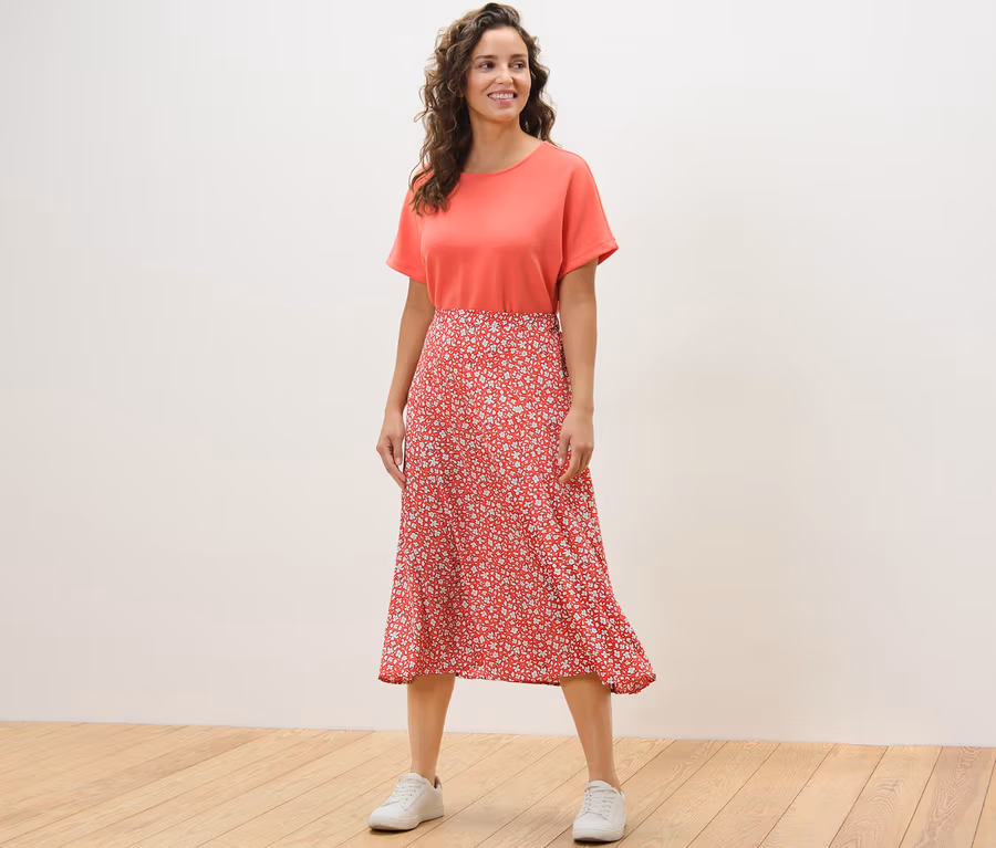 Jupe midi imprimée, corail