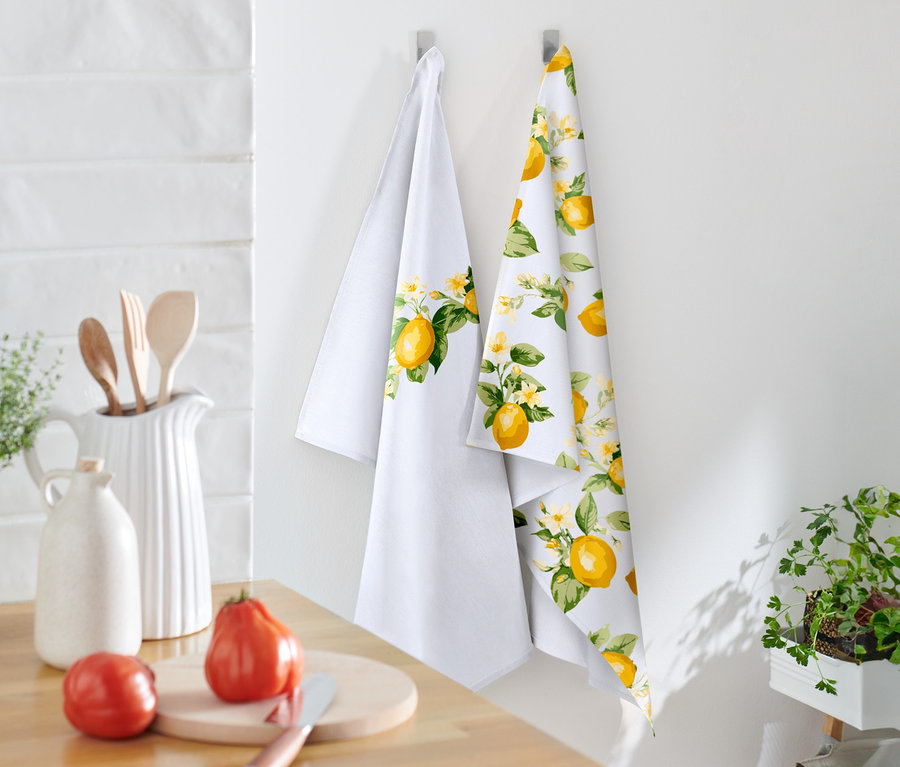 1 x avec imprimé intégral multicolore citrons, 1 x avec imprimé multicolore citron