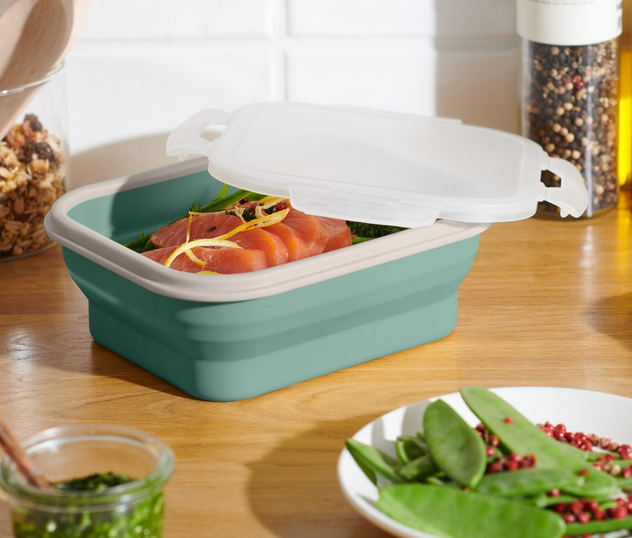 - Couvercle avec joint en silicone et fermetures clip : antifuite et idéal en déplacement