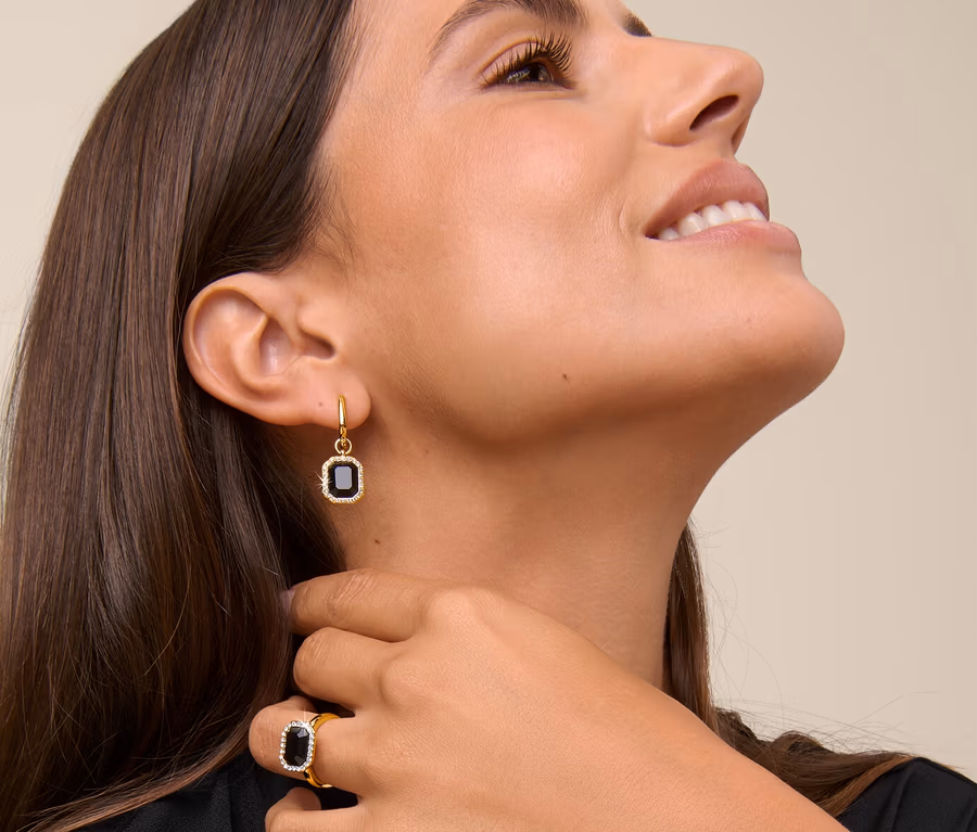 • Créoles à clapet avec pendentif à cristal noir