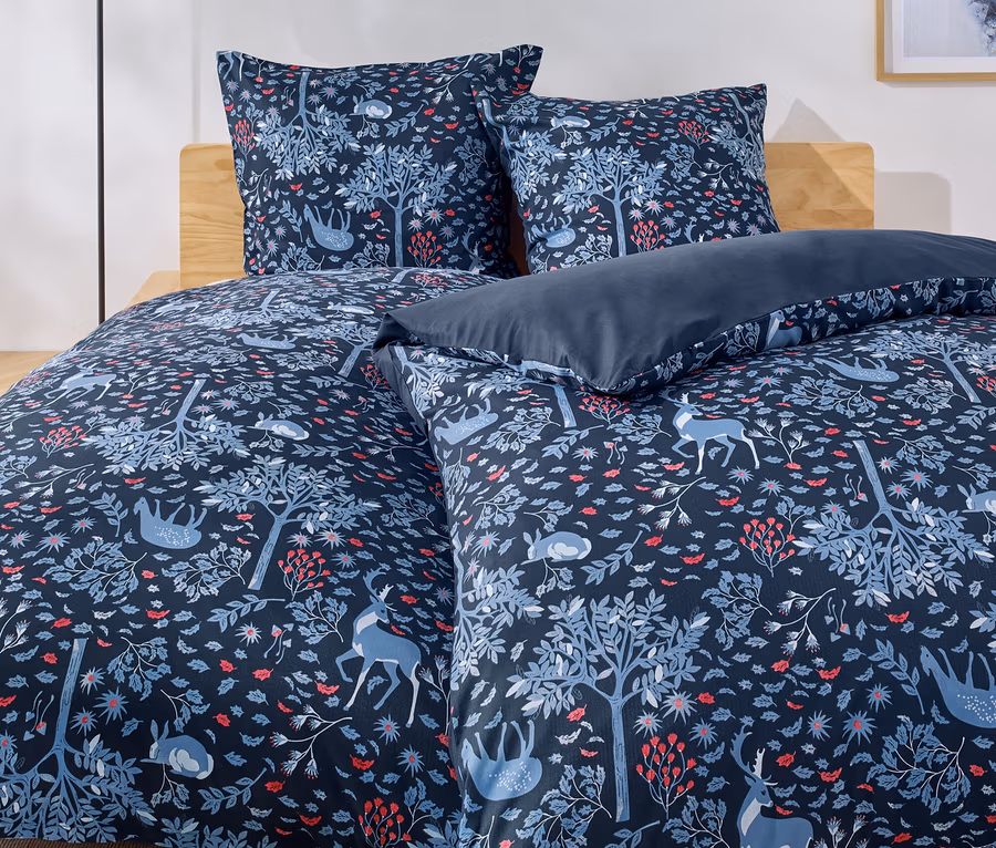 - 1 côté bleu foncé à imprimé intégral, 1 côté bleu foncé