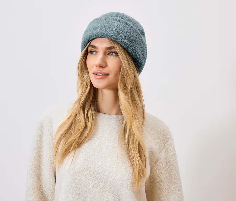 Bonnet en peluche, sauge