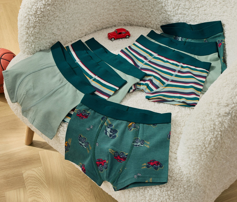 - 2 x vert foncé avec imprimé intégral de camion, 2 x multicolore à rayures, 3 x sauge