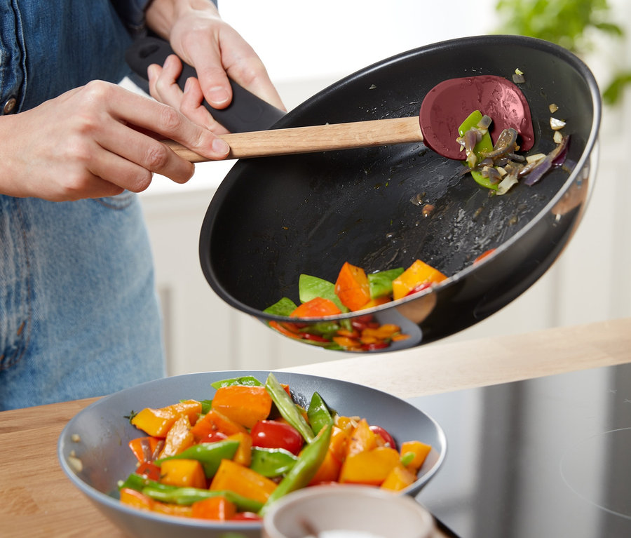 - Cuilleron de forme spéciale en silicone souple – idéal pour racler par exemple les bols, les poêles ou les casseroles