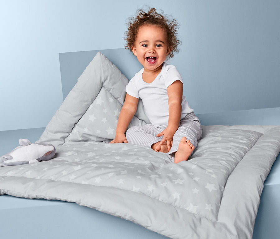 La meilleure base pour le jeu et le plaisir ! Avec cette couverture de sol rembourrée et lavable en machine, les tout-petits en profitent bien : la couverture de bébé offre beaucoup de place et présente les dimensions approximatives de 100 x 100 cm. Grâce au rembourrage doux ainsi qu’au dessus en pur coton doux sur la peau, il est particulièrement agréable de marcher à quatre pattes, de s’allonger et de faire des câlins.