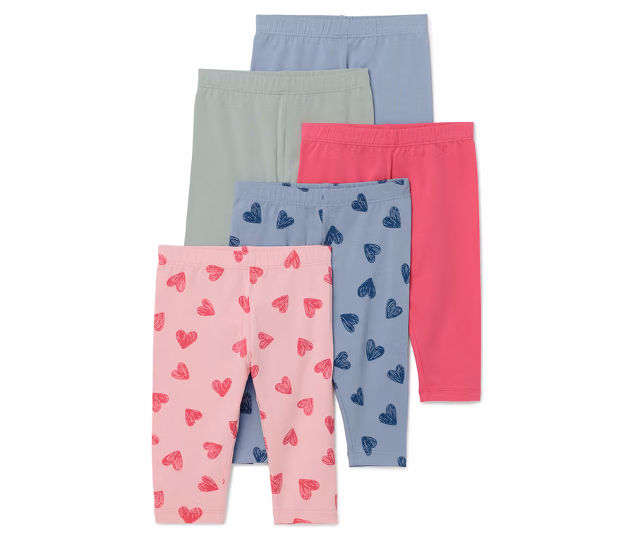 5 leggings pour enfant, imprimé cœur intégral