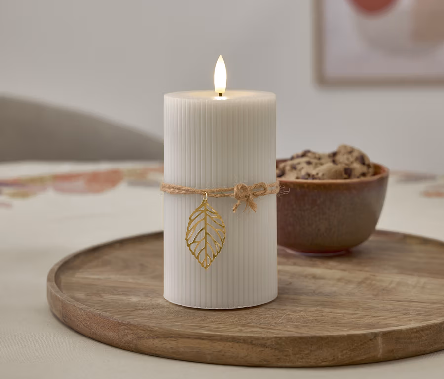 Bougie LED en cire véritable avec feuille