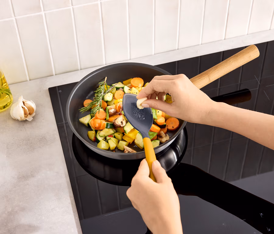 - En cas d’utilisation d’huile, la température peut dépasser 200°C dans certaines circonstances. Ne laissez donc jamais la spatule dans ou sur le bord de poêles ou casseroles chaudes.