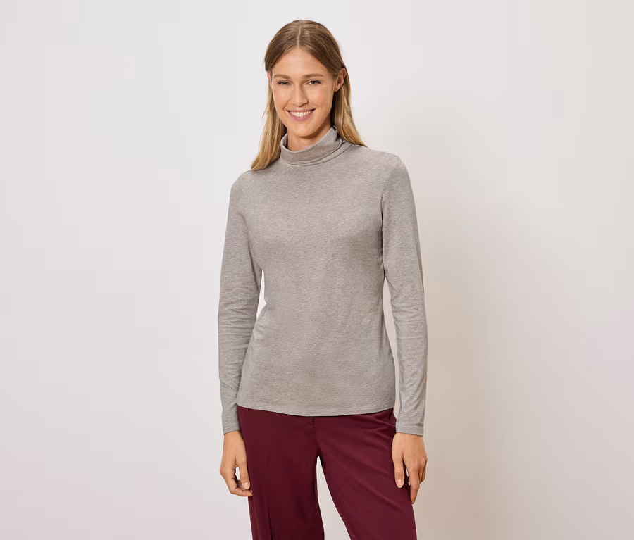 - Ce t-shirt col roulé à manches longues soutient une culture cotonnière durable.