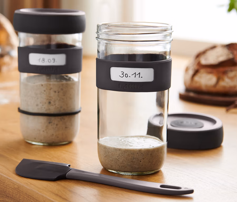 Avec 2 bocaux à couvercle, spatule, manchon en silicone, bande en silicone, recettes et mode d’emploi