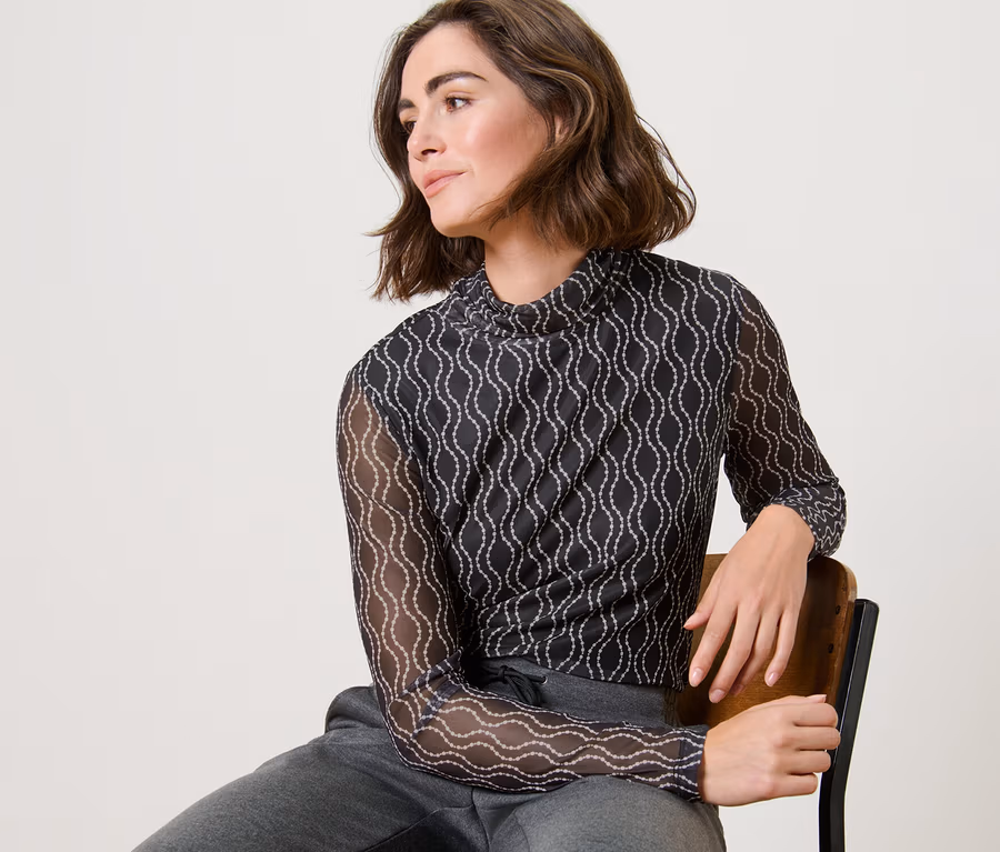 Haut manches longues à col roulé en mesh imprimé
