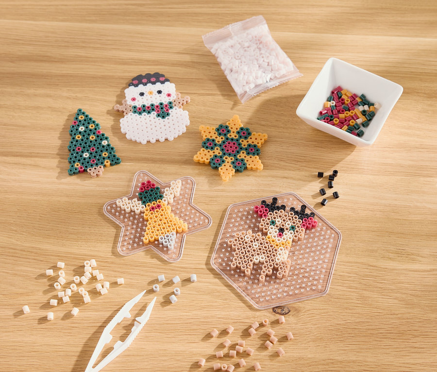 - 2'000 perles à repasser en 8 couleurs (250 chacune), pincette, plateau hexagonal, plateau en forme d’étoile, modèles au format DIN A4 et mode d’emploi inclus