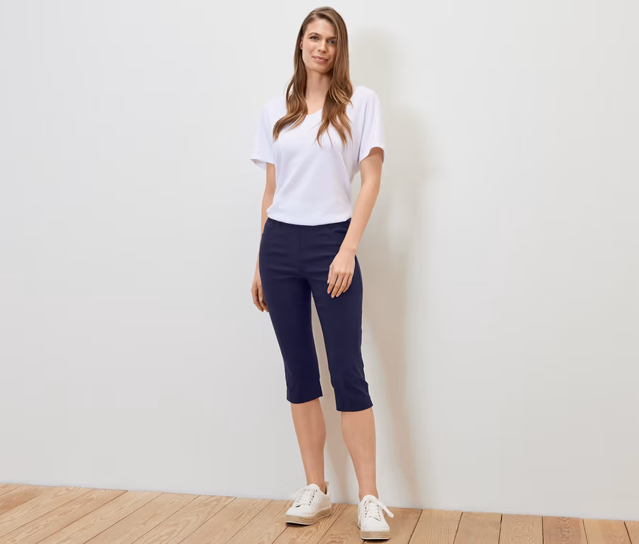 Pantalon 3/4 en bengaline, bleu foncé