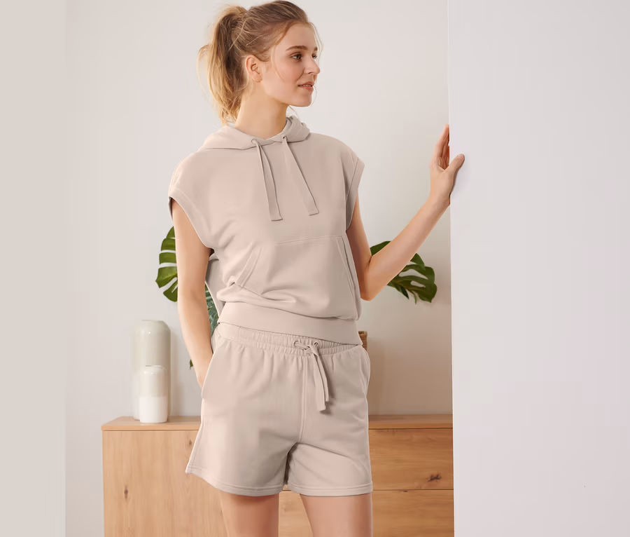 Short de sport molletonné, crème