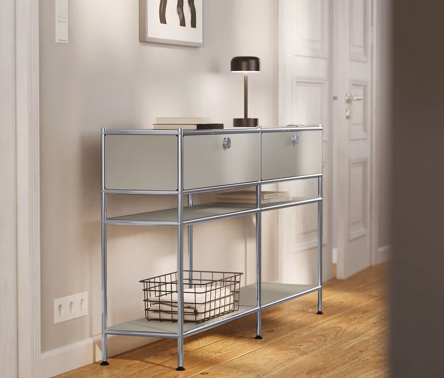 Console métallique « CN3 Slim Line » avec 2 tiroirs, gris clair