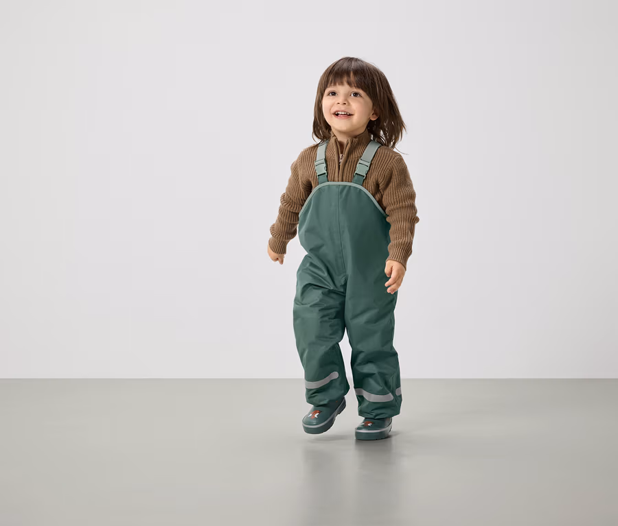 Pantalon de pluie thermique pour enfant avec doublure en polaire, vert