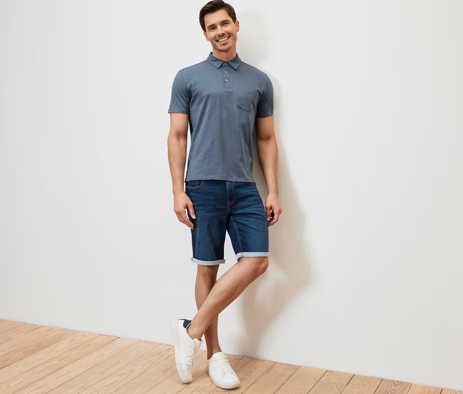 Polo en jersey, bleu clair chiné
