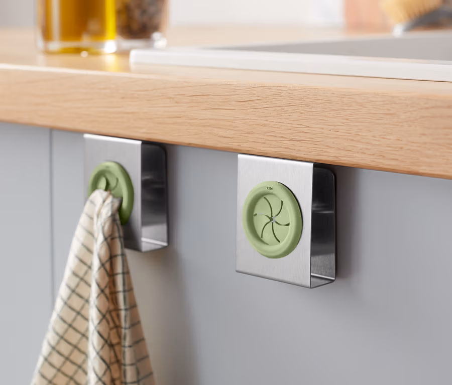 - Suspension rapide et facile, par exemple, de linges de cuisine et de chiffons de nettoyage