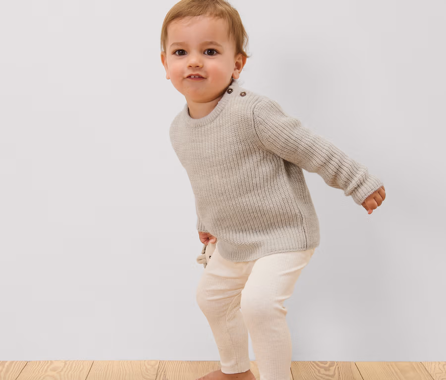 - Bords côtelés sur l’encolure ronde, les manches et la base