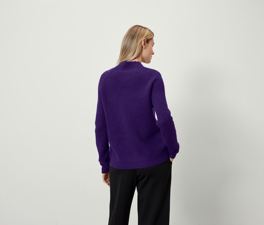 - Bords côtelés élastiques au niveau du col montant, de l’extrémité des manches et de la base
