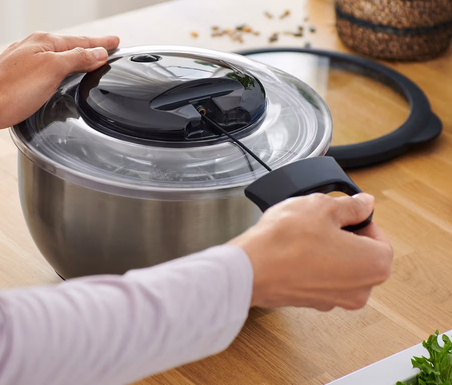 Essoreuse à salade en inox avec couvercle