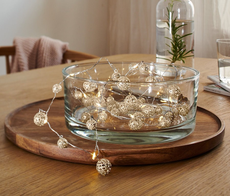 - 38 boules couleur champagne doré de 2 tailles entre les LED