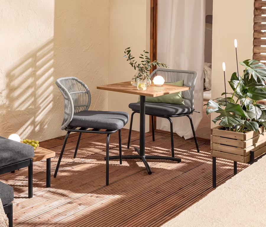 - Coussin d’assise, patins protecteurs, matériel et instructions de montage inclus