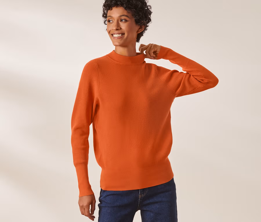 • Pull en maille avec un petit col montant