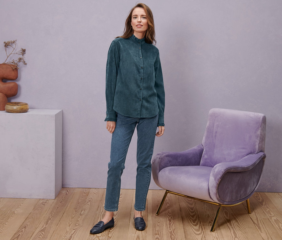 - Manchette boutonnée aux poignets et bord ruché