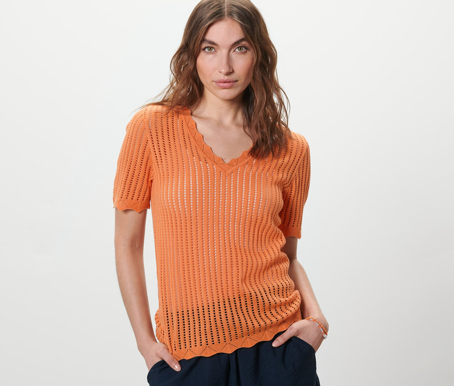- Tricot en vague particulier au col, à la base des manches et à la base