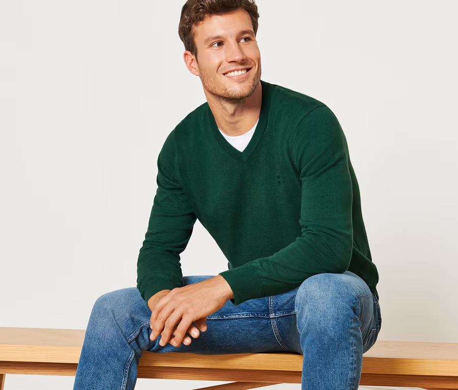 Pull à encolure en V, vert foncé
