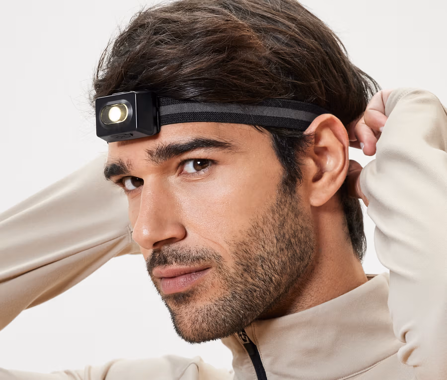 - Bandeau élastique, doux et réglable en largeur avec des éléments réfléchissants