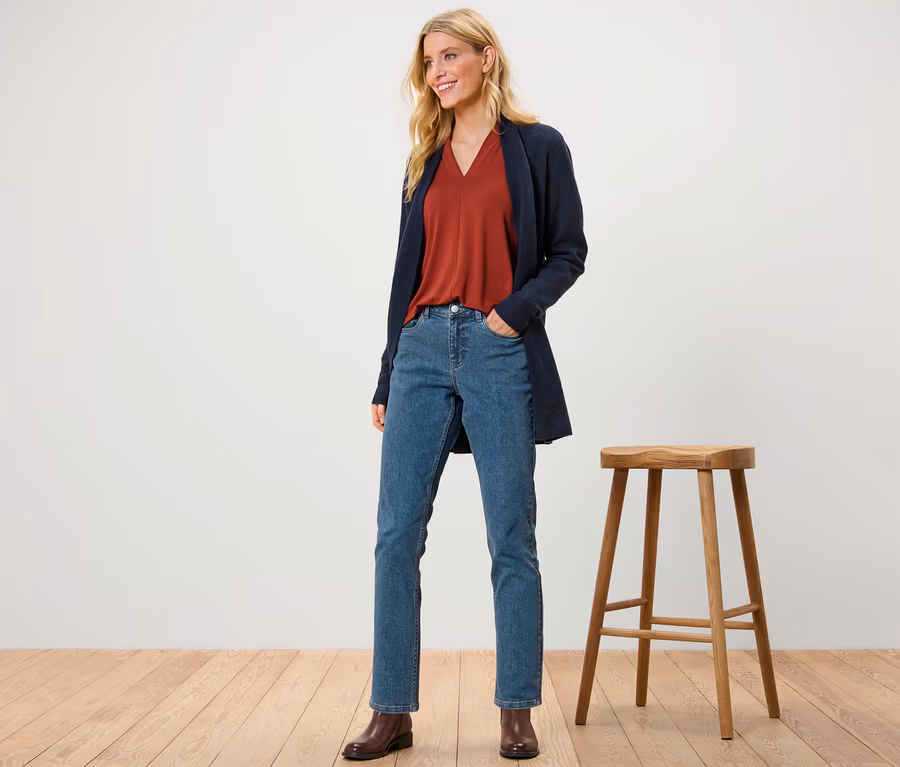 • Coupe standard | Jambes droites | Taille mi-haute | Longueur cheville