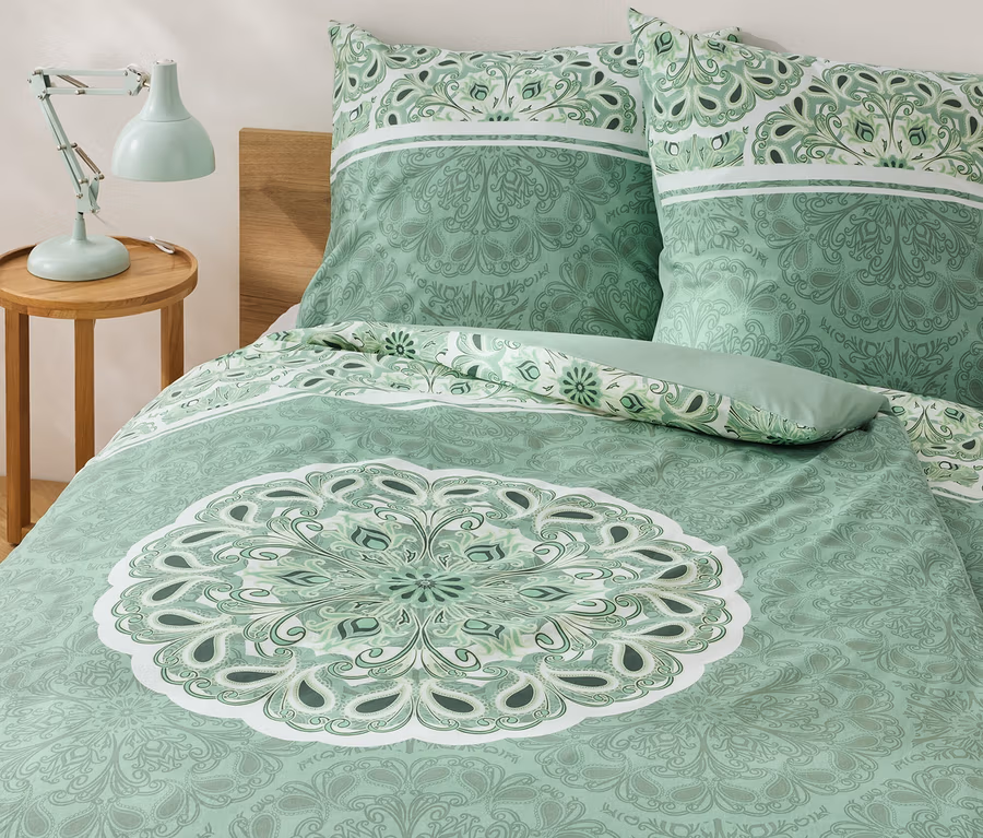 Parure de lit en renforcé, mandala, verte, taille normale