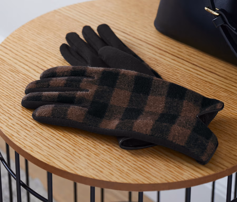 - Revers de la main noir-marron à carreaux, paume noire